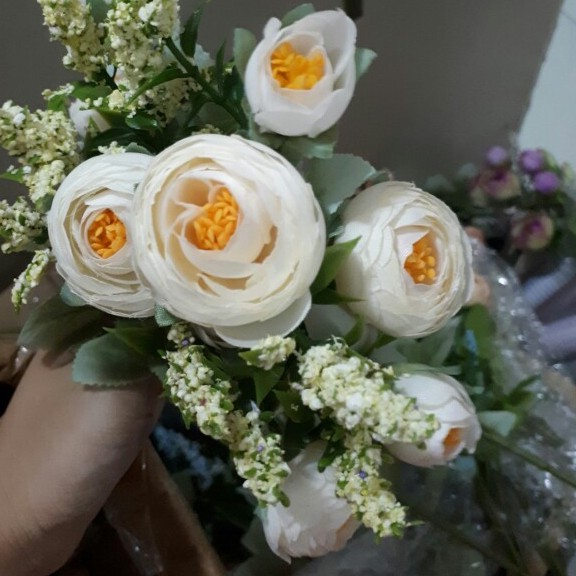 GIÁ BÁN MỘT NHÁNH 10 BÔNG, KHÔNG PHẢI NGUYÊN BÌNH, KHÔNG CÓ BÌNH CẮM BÔNG. CẮM ĐƯỢC NHƯ HÌNH MẪU TẦM 3 NHÁNH BÔNG.1 nhánh 10 bông, chiều cao cành 35cm, đường kính hoa 4cm - 5cm