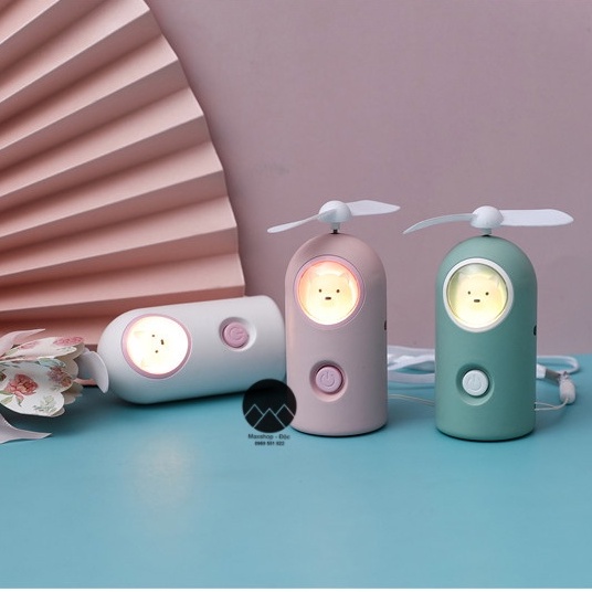 Quạt mini quạt tích điện, quạt cầm tay mini du lịch có đèn hình gấu Maxshop Độc