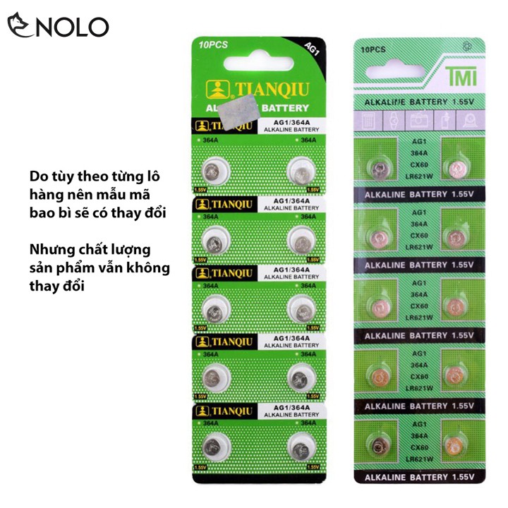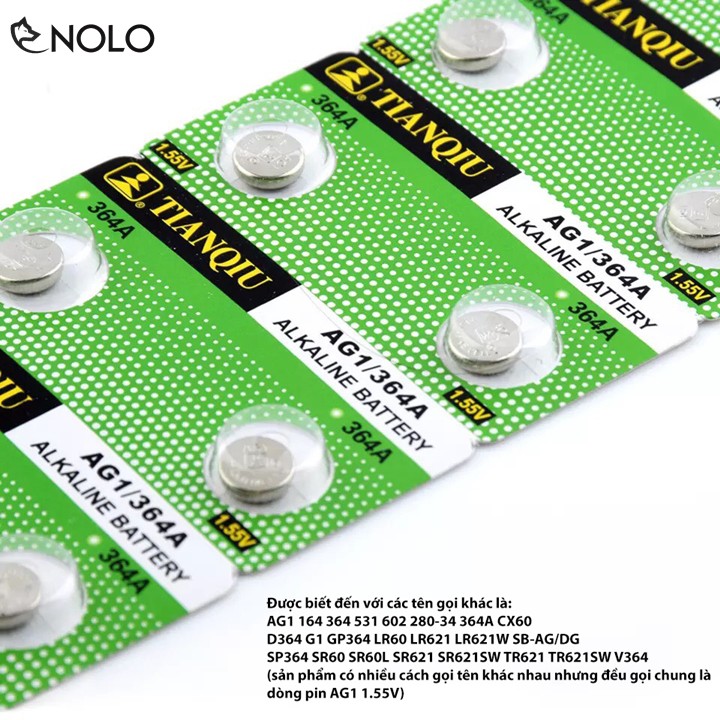 Được biết đến với các tên gọi khác là: AG1 164 364 531 602 280-34 364A CX60 D364 G1 GP364 LR60 LR621 LR621W SB-AG/DG SP364 SR60 SR60L SR621 SR621SW TR621 TR621SW V364 (sản phẩm có nhiều cách gọi tên khác nhau nhưng đều gọi chung là dòng pin AG1 1.55V)