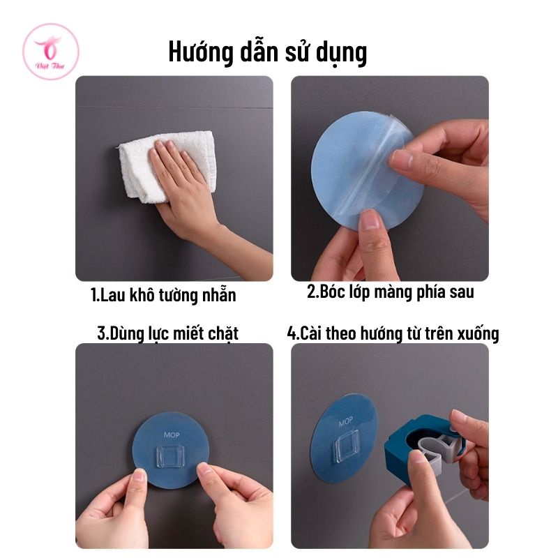 Móc dán tường kẹp cây lau nhà chịu lực tốt Việt Thư, siêu dính, chống nước