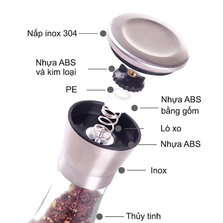 Giới thiệu [Mã LIFEHLM2 giảm 10% tối đa 15k đơn 0đ] Lọ xay tiêu thủy tinh cao cấp