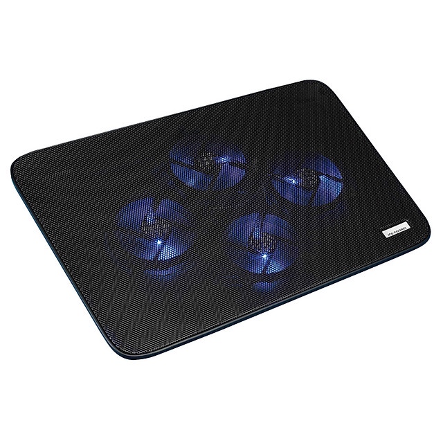 Đế có 4 quạt với kích thước 8cm mỗi quạt, có thể sử dụng được cho laptop có kích thước từ 12" đến 15.6".