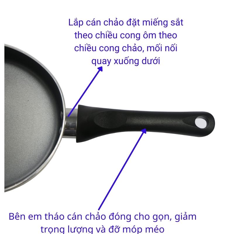 - Hiện tại sản phẩm chỉ có 1 màu xám ngọc trai như hình. Shop em tháo cán chảo để đóng gói cho gọn, đỡ móp méo khi vận chuyển và giảm trọng lượng sản phẩm ạ. Về nhà Anh/Chị lấy tovit lắp lại giúp em với ạ.