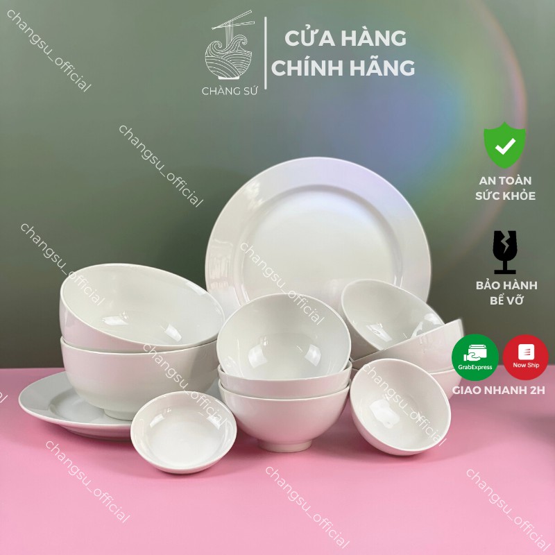 Nhà cửa & Đời sống > Bộ đồ bàn ăn > Tô || [Mã LIFEHLSALE1 giảm 10% đơn 150K] Bộ bát đĩa ăn cơm gia đình đẹp 12 món cơ bản - Set chén dĩa sứ trắng dễ thương HCB12Còn hàng