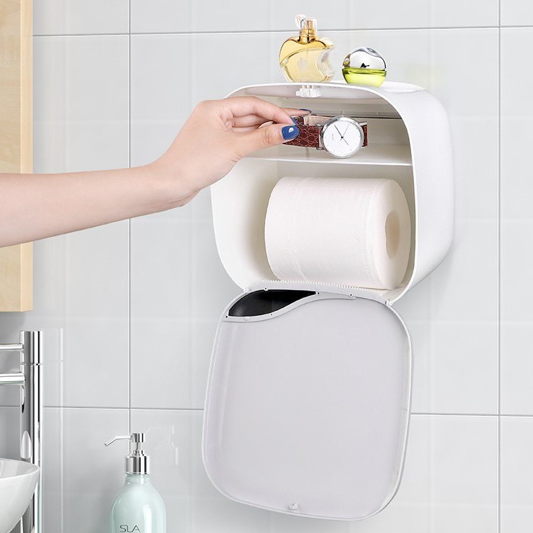 Hộp đựng giấy vệ sinh kín có nắp giữ cho cuộn giấy luôn khô ráo, tránh nước hoặc bám bụi.