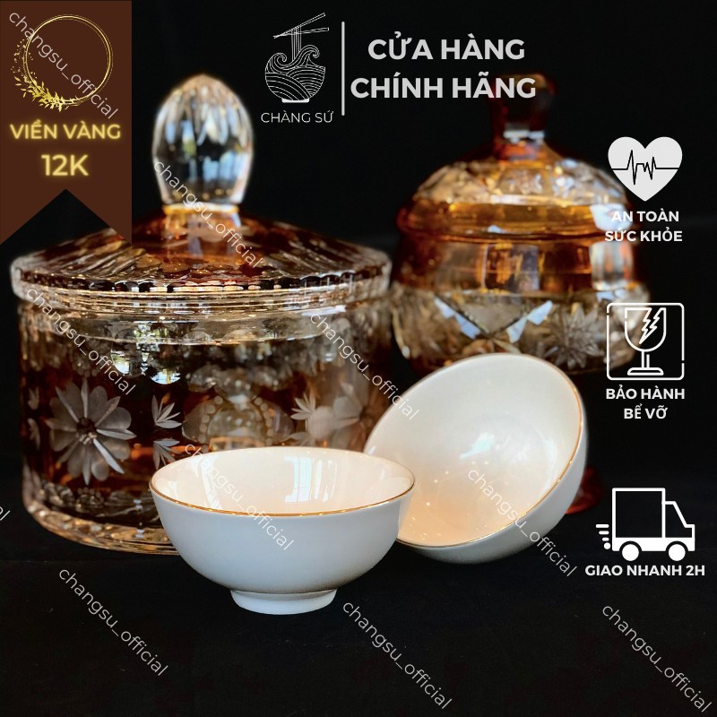 Giới thiệu [Mã LIFEHLSALE2 giảm 10% đơn 0Đ] Bát chấm viền vàng thật 12k - Chén đựng gia vị nước chấm sứ Minh Châu đường kính 9cm