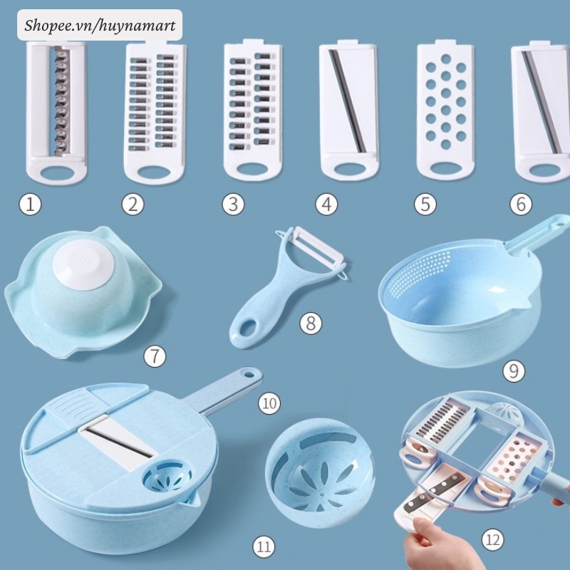 Bộ Rổ Nạo Rau Củ Đa Năng Lúa Mạch 12 Chi Tiết An Toàn Tiện Lợi Mới Huyna Mart NB75