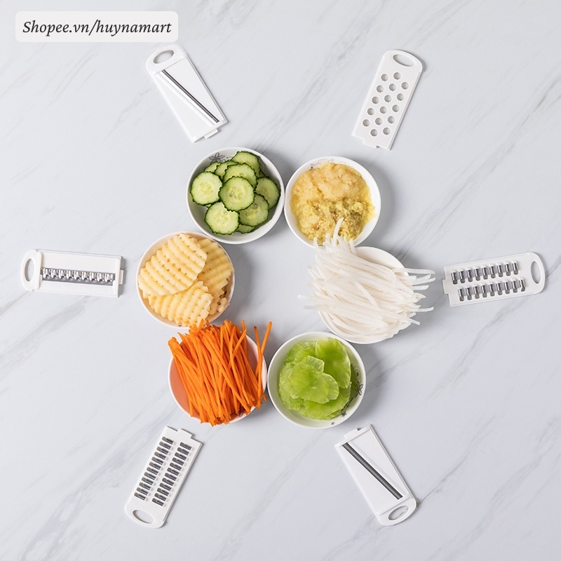 Với 11 chức năng: Thau, rổ, nghiền gừng tỏi, lược trứng, thái lát, bào sợi to nhỏ, bào khoanh.