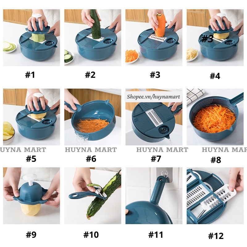 Bộ Rổ Nạo Rau Củ Đa Năng Lúa Mạch 12 Chi Tiết An Toàn Tiện Lợi Mới Huyna Mart NB75Thông tin sản phẩm: