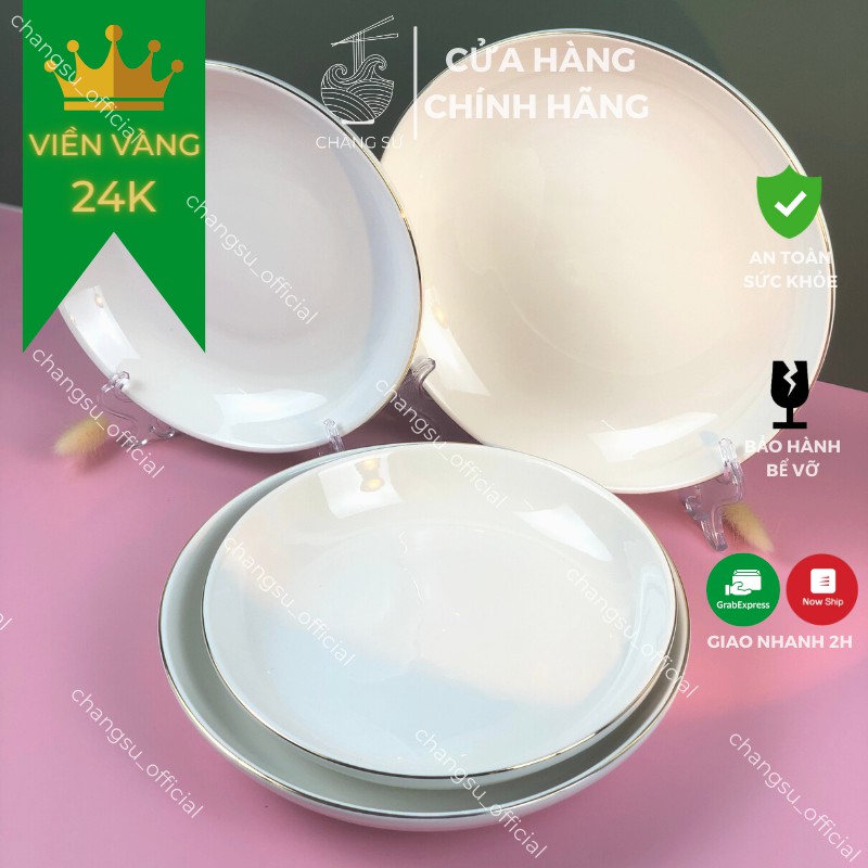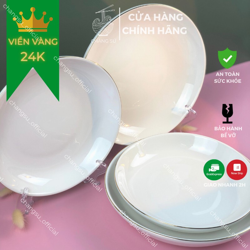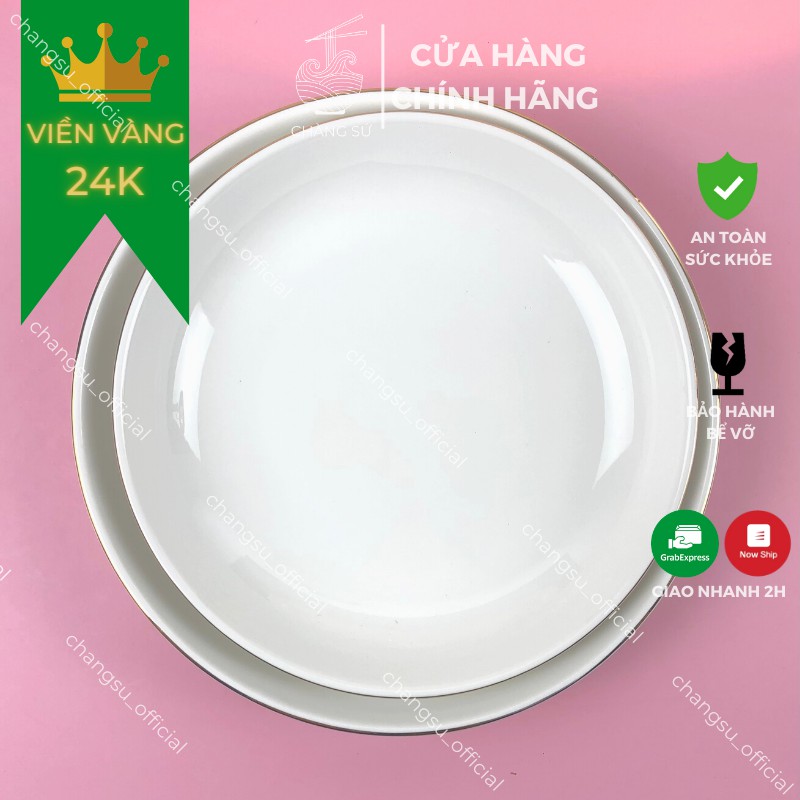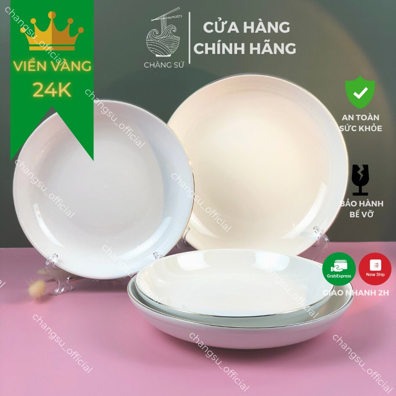 Nhà cửa & Đời sống > Bộ đồ bàn ăn > Dĩa || [Mã LIFEHLSALE2 giảm 10% đơn 0Đ] Đĩa sâu lòng viền vàng thật 12k sứ Minh Châu - Dĩa trắng sứ kẻ chỉ vàng siêu sangCòn hàng