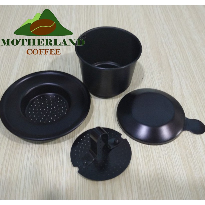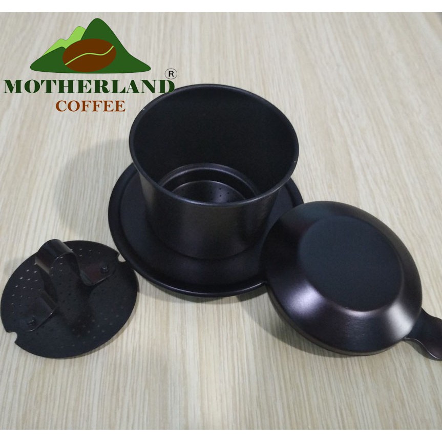 Motherland coffee hiện đang có 2 dòng phin màu đen là: phin cafe màu đen có logo và không logo. Phin nhôm mạ màu đen đang trở thành một xu thế tiêu dùng trong năm 2021-2022 và trong tương lai.