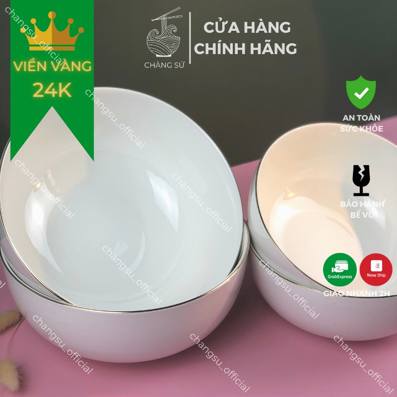 Bát ô tô viền vàng thật 12k kiểu Hàn khum bầu sứ Minh Châu