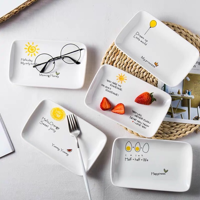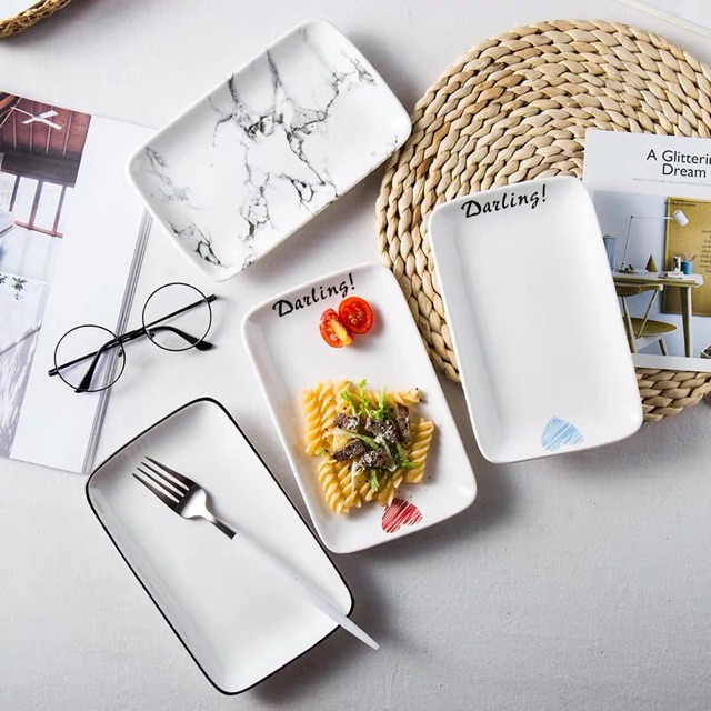 Nhà cửa & Đời sống > Bộ đồ bàn ăn > Dĩa || [Mã LIFEHLSALE2 giảm 10% đơn 0Đ] Đĩa sứ hình chữ nhật, đĩa đựng hoa quả, trang trí đồ ăn cao cấp - VS29Còn hàng