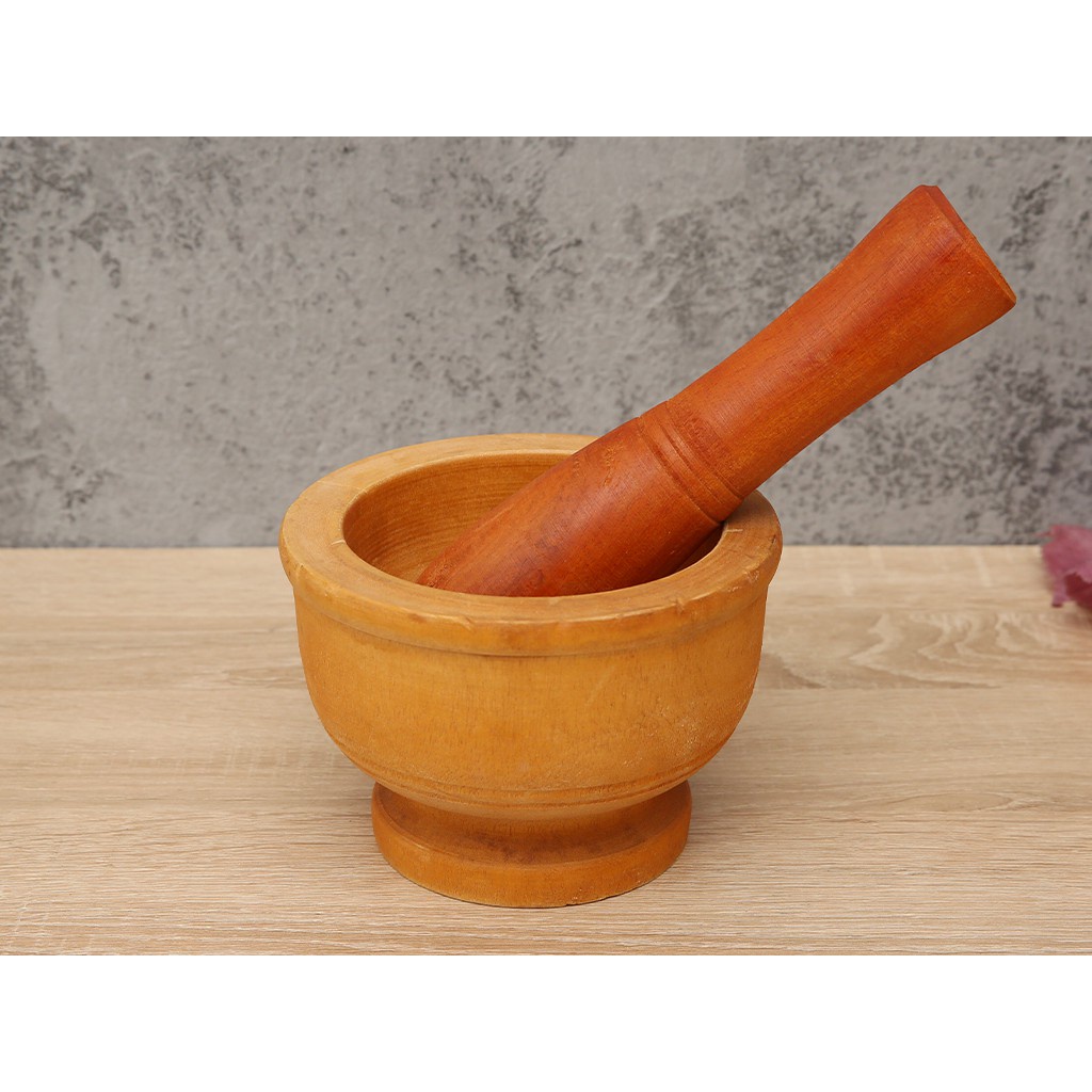 Công dụng: giã hành, giã tỏi, giã gừng....Bộ Cối chày bằng gỗ tiện dụng