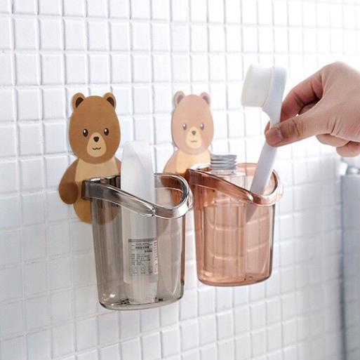 [FREESHIP❤️] Cốc Gấu Dán Tường Để Bàn Chải Đánh Răng Hình Gấu Có Lỗ Thoát Nước Tiện Lợi