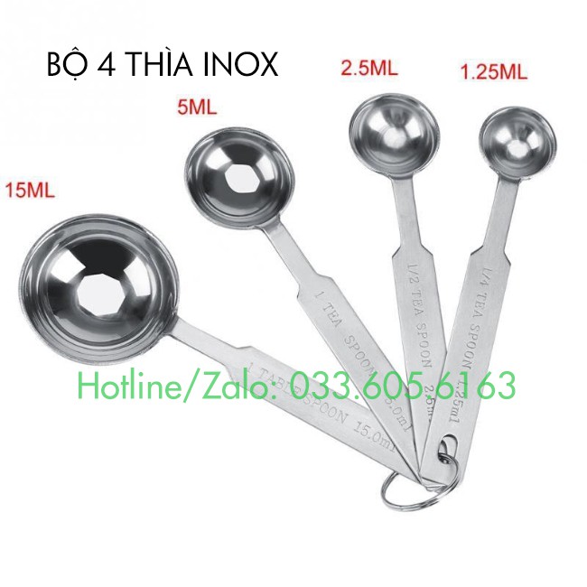 Bộ Thìa Đong Inox 4 chiếc - Bộ thìa đong Nhựa 5 chiếc - Dụng cụ pha chế TV
