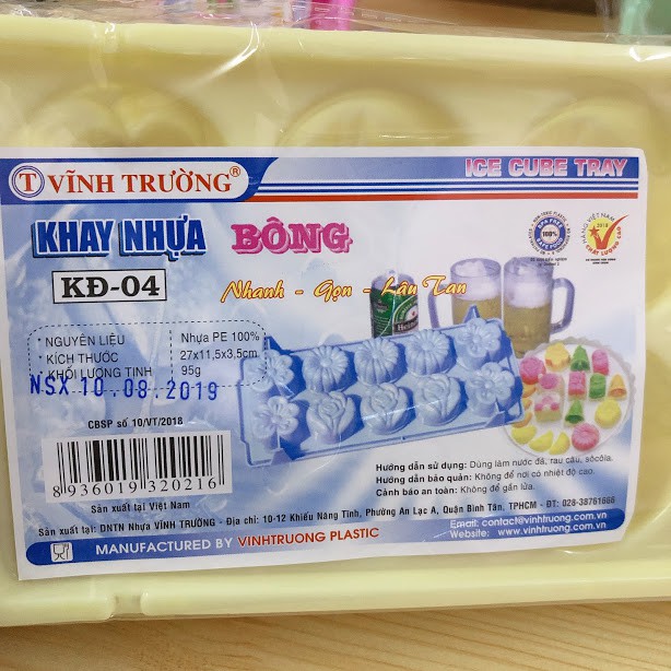 Giới thiệu khay nhựa làm đá khuôn râu câu hình 10 bông hiệu vĩnh trường