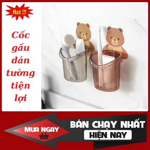 Nhà cửa & Đời sống > Đồ dùng phòng tắm > Kệ đựng bàn chải, kệ nhả kem đánh răng || [Mã LIFEHLSALE2 giảm 10% đơn 0Đ] Cốc gấu dán tường để bàn chải đánh răng hình gấu có lỗ thoát nước tiện lợiCòn hàng