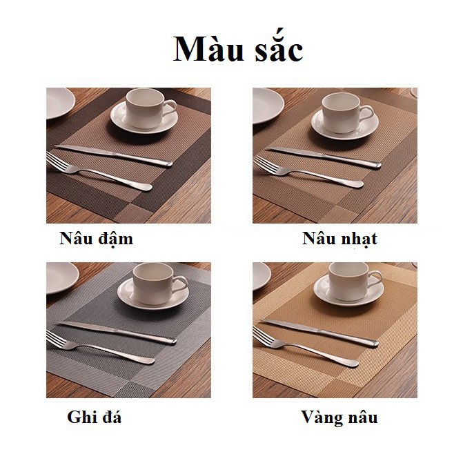 Nhà cửa & Đời sống > Bộ đồ bàn ăn > Khay, tấm lót bàn ăn || [Mã LIFEHLSALE2 giảm 10% đơn 0Đ] Tấm lót bàn ăn bằng nhựa PVC 12 màu (LOẠI 1)Còn hàng