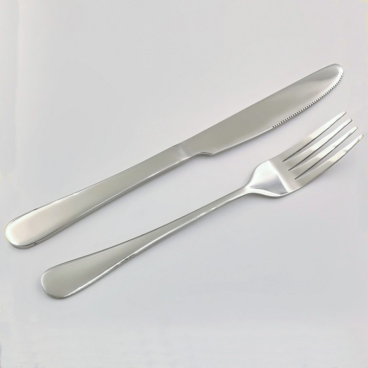 Dao dĩa ăn bít tết inox cao cấp bộ 2 món cán trơn dày sáng bóng