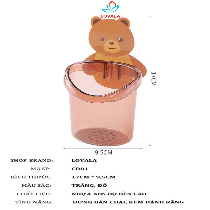 Giới thiệu Cốc Gấu Dán Tường Để Đồ Đa Năng Đựng Bàn Chải Kem Đánh Răng Để LOVALA CD01