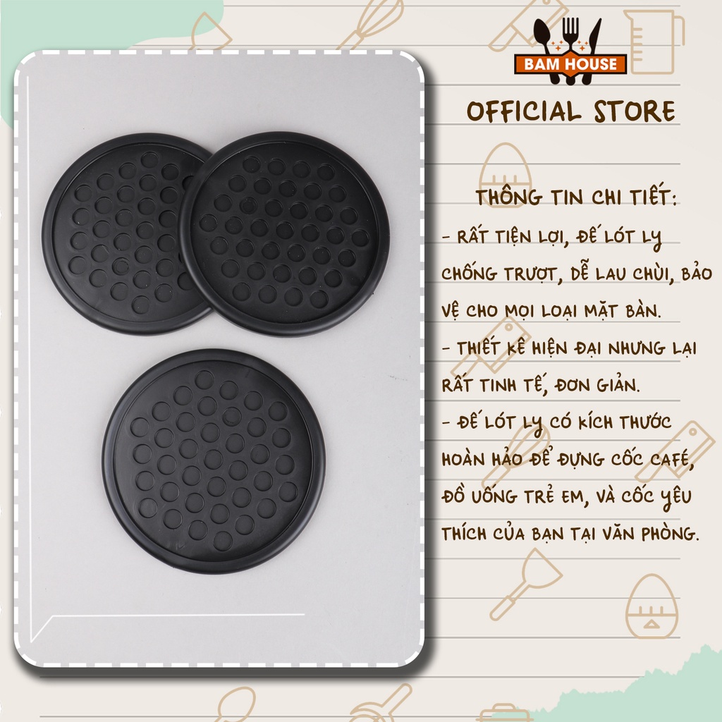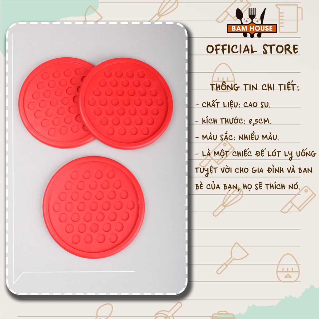 Nhà cửa & Đời sống > Bộ đồ bàn ăn > Khay, tấm lót bàn ăn || [Mã LIFEM1 giảm 50k đơn 99k] Đế lót ly cao su tổ ong Bam House chống trượt tiện lợi cao cấp LLTO02 – Gia dụng bếpCòn hàng