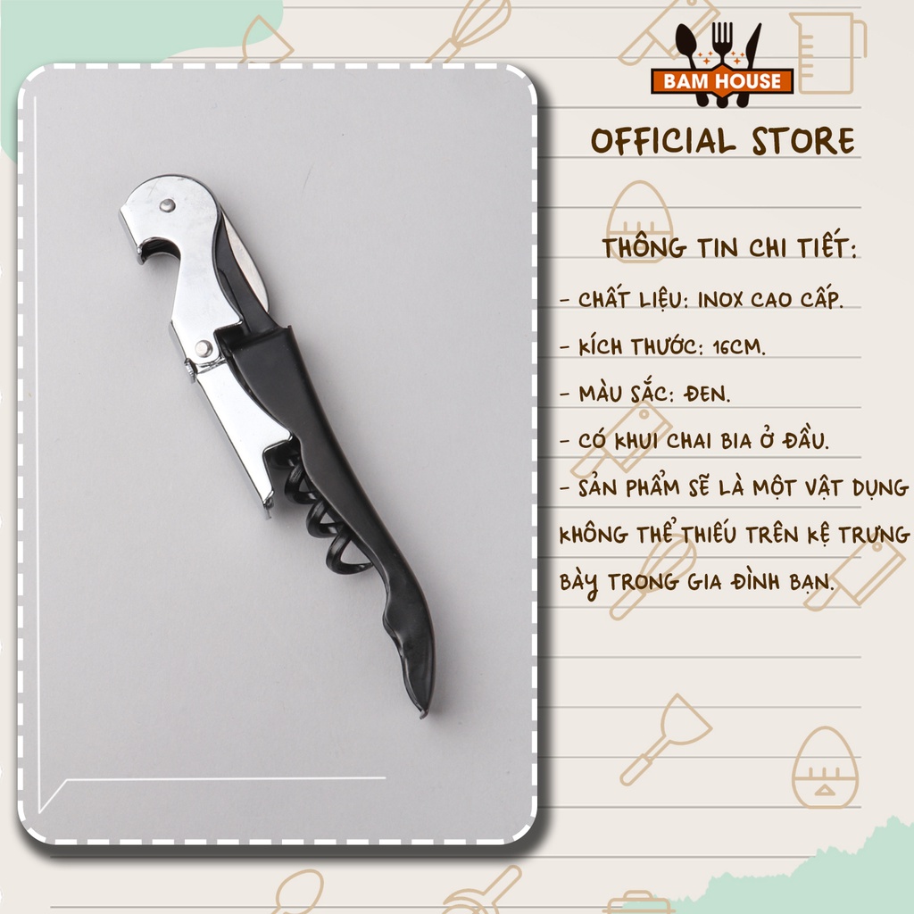Dụng cụ khui ruou vang và khui bia inox nhỏ gọn Bam House cao cấp đang được phân phối bởi Bam Kitchen