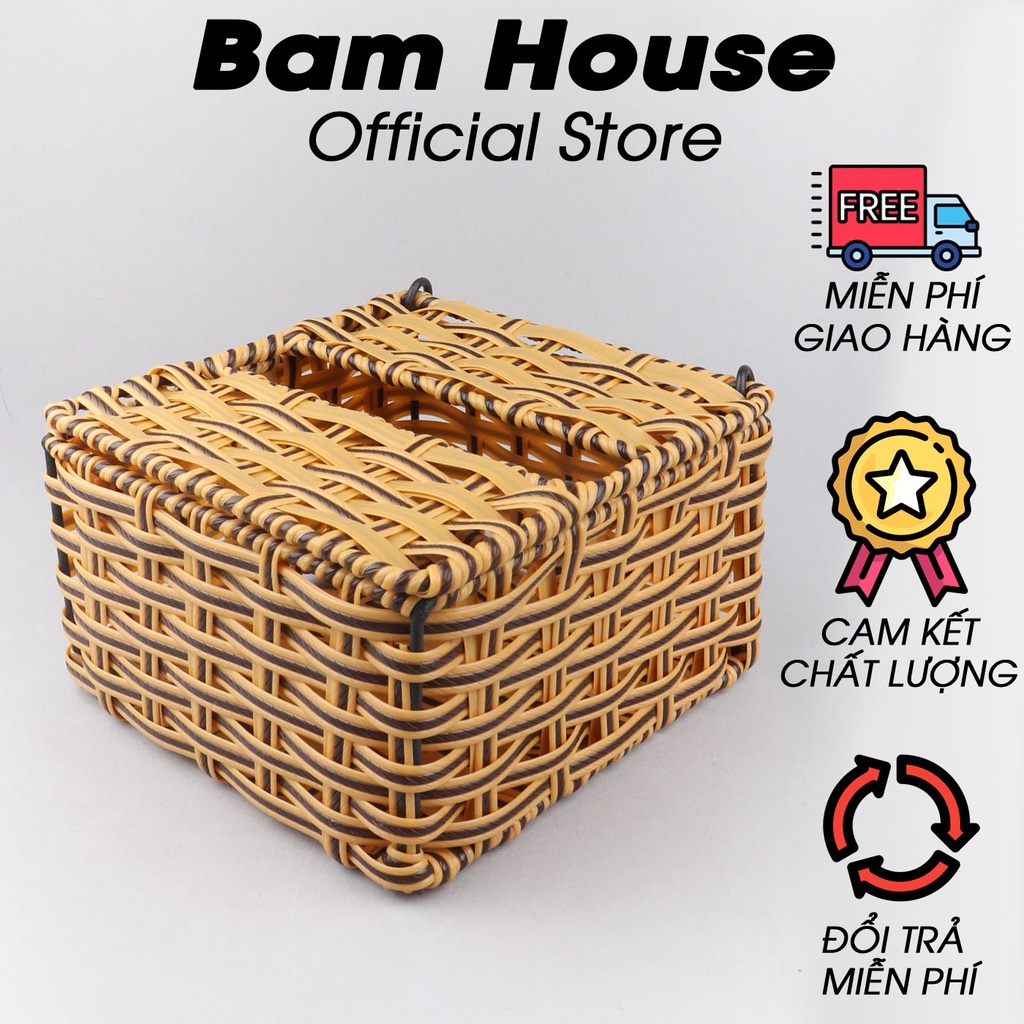 Nhà cửa & Đời sống > Sắp xếp nhà cửa > Hộp khăn giấy || [Mã LIFEM1 giảm 50k đơn 99k] Hộp đựng khăn giấy nhựa mây Bam House dạng vuông cao cấp KI01 – Gia dụng bếpCòn hàng