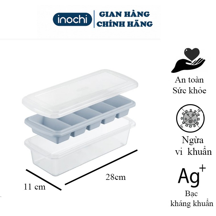 Khay đá 5 viên dành cho tủ lạnh có nắp đậy kèm hộp đựng đá tiện lợi kháng khuẩn Kari inochi