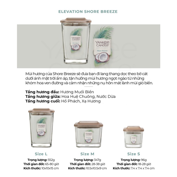 Nhà cửa & Đời sống > Trang trí nhà cửa > Nến & đồ đựng nến || [Mã LIFEMALL991 giảm 10% đơn 99K] Nến ly vuông Elevation Yankee Candle size L - Shore Breeze (552g)Còn hàng