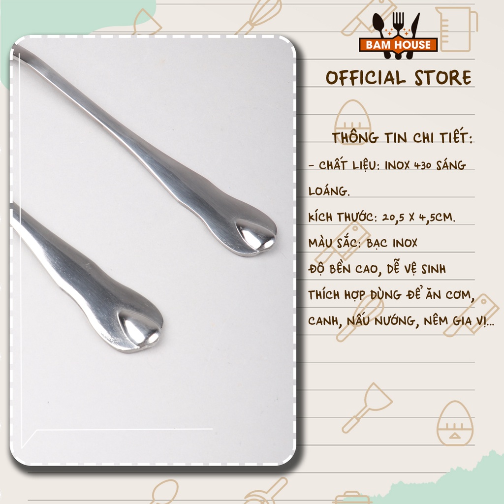 Nhà cửa & Đời sống > Bộ đồ bàn ăn > Bộ dao kéo || [Mã LIFEMALL991 giảm 10% đơn 99K] Muỗng soup nhọn inox Bam House cán giọt nước loại dày cao cấp MGN02 - Gia dụng bếpCòn hàng