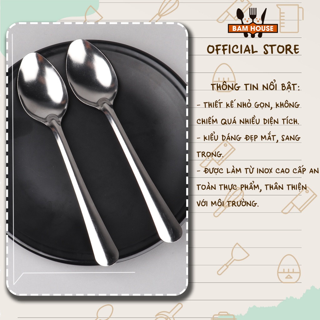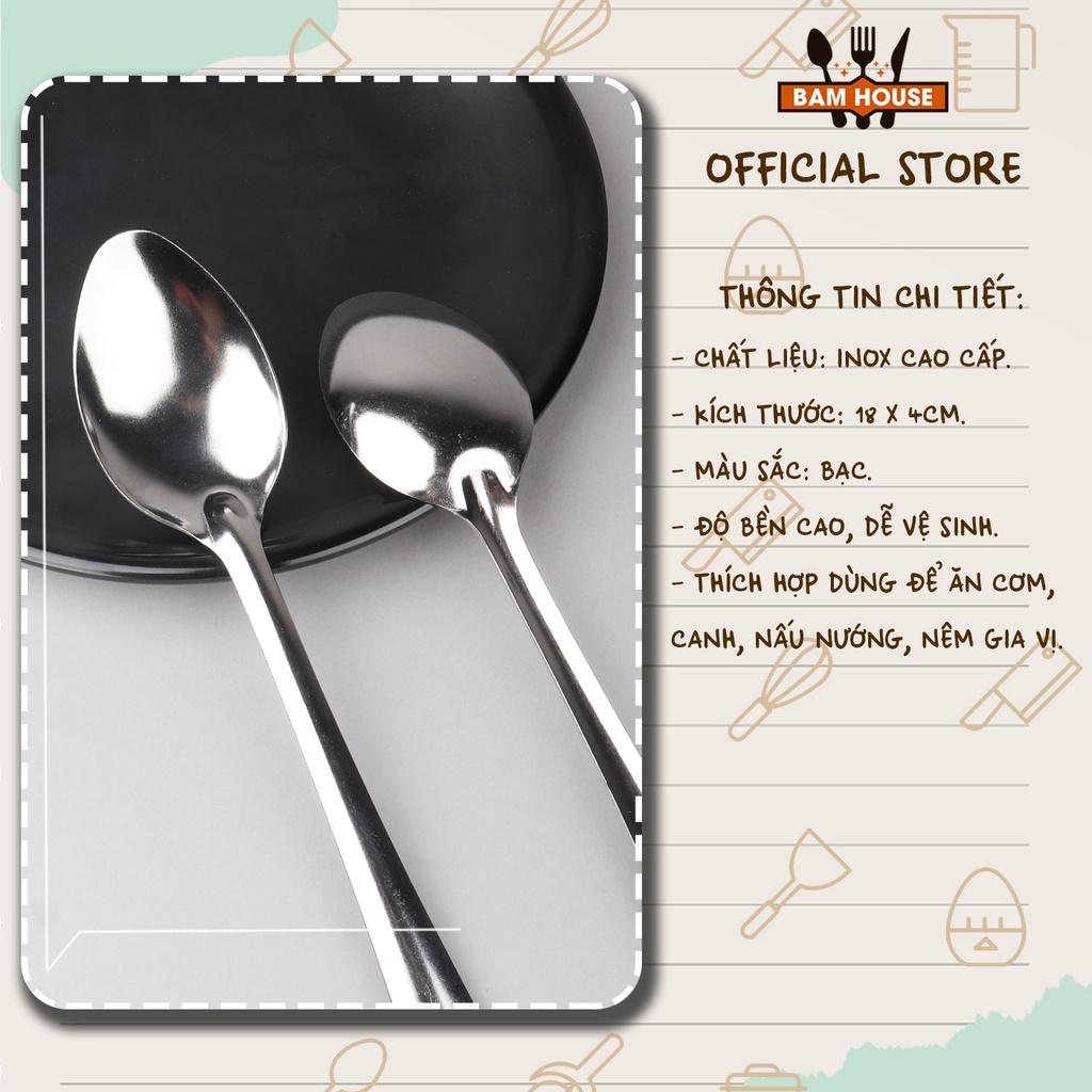 Nhà cửa & Đời sống > Bộ đồ bàn ăn > Bộ dao kéo || [Mã LIFEMALL991 giảm 10% đơn 99K] Muỗng soup nhọn inox Bam House loại dày cao cấp MT02 - Gia dụng bếpCòn hàng
