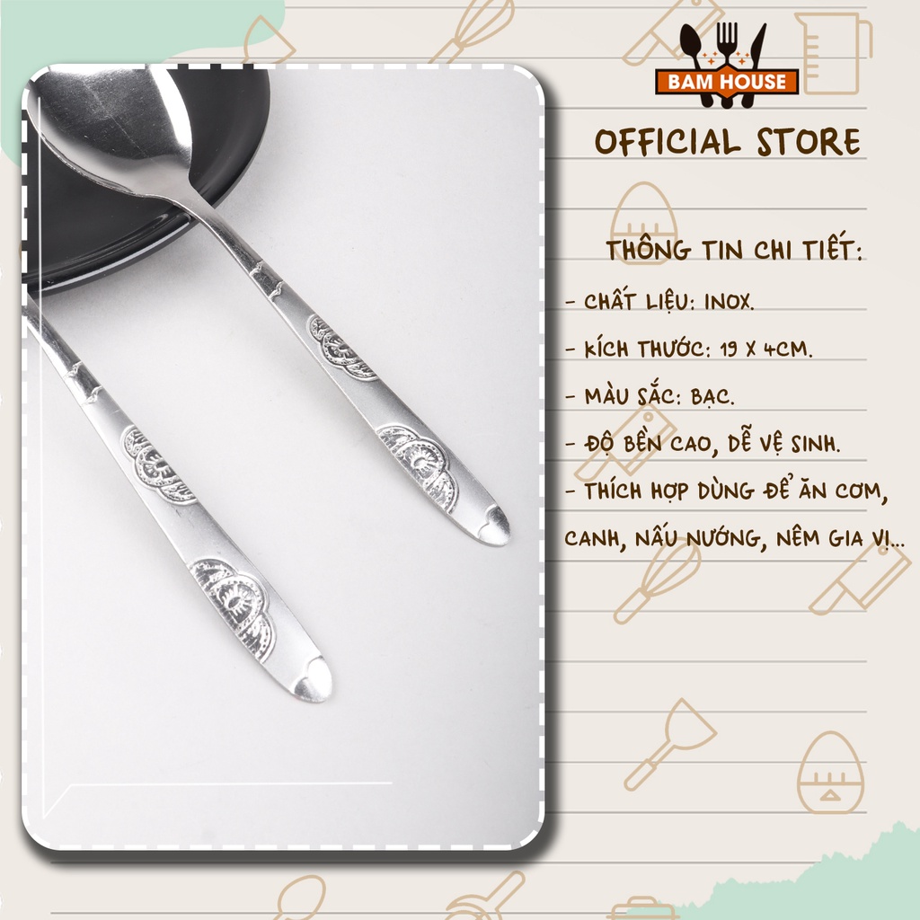 Nhà cửa & Đời sống > Bộ đồ bàn ăn > Bộ dao kéo || [Mã LIFEMALL991 giảm 10% đơn 99K] Muỗng soup tròn inox Bam House cán hoạ tiết loại dày cao cấp MHT01 - Gia dụng bếpCòn hàng