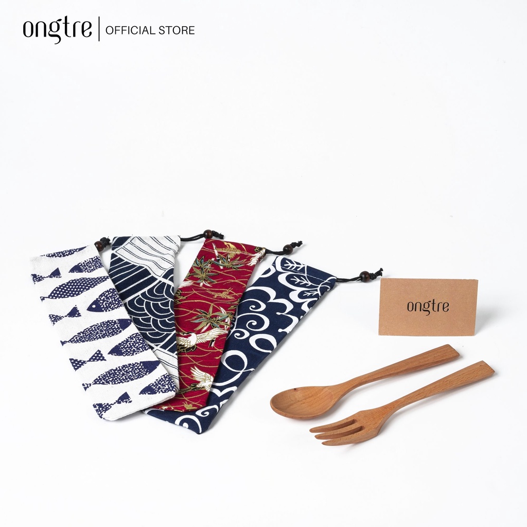 Giới thiệu [Mã LIFEM1 giảm 50k đơn 99k] Combo Muỗng Nĩa gỗ sồi kèm túi vải ONGTRE / Du lịch, quà tặng, Decor, văn phòng