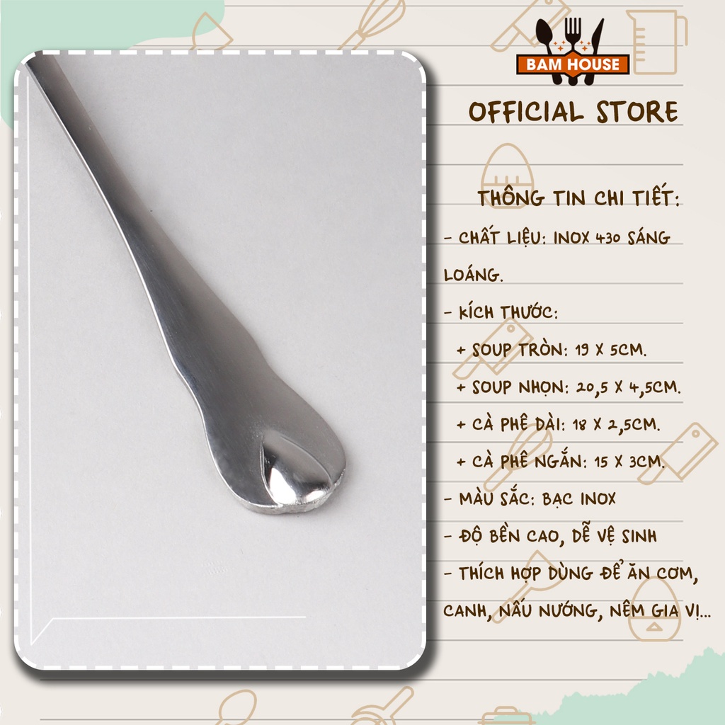 Nhà cửa & Đời sống > Bộ đồ bàn ăn > Bộ dao kéo || [Mã LIFEMALL991 giảm 10% đơn 99K] Set Muỗng canh, Muỗng soup, Muỗng cafe inox 430 Bam House cao cấp MUI04 – Gia dụng bếpCòn hàng