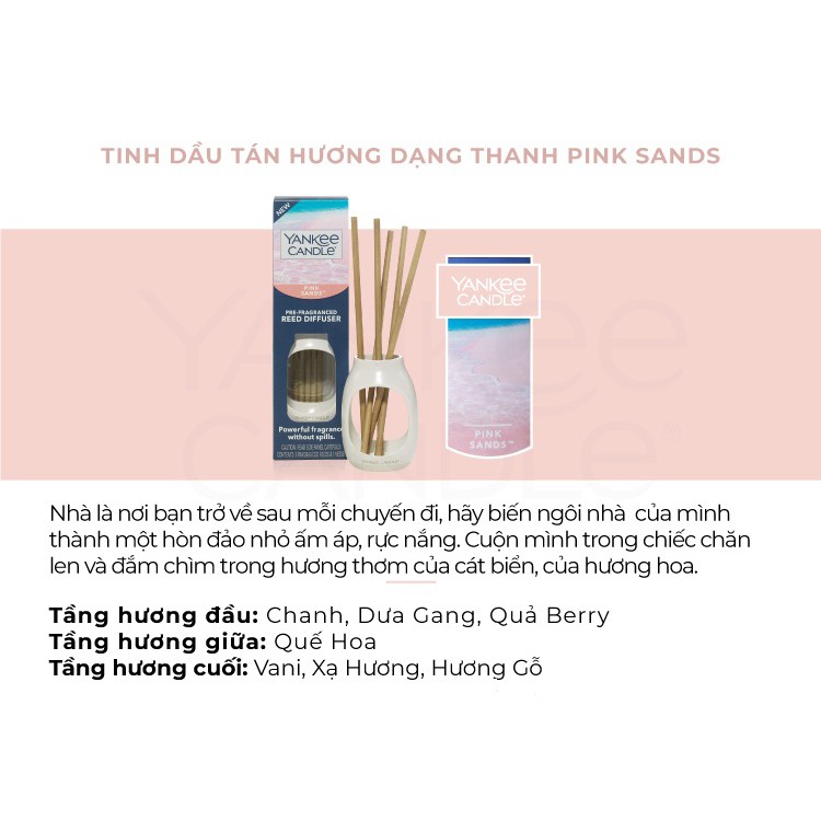 Giới thiệu Tinh dầu tán hương dạng thanh Yankee Candle - Pink Sands (gồm lọ & 5 thanh tán hương)