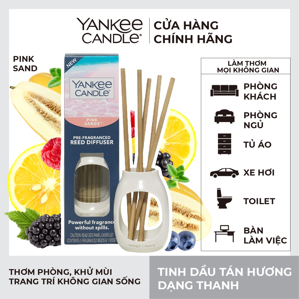 Nhà cửa & Đời sống > Trang trí nhà cửa > Nến & đồ đựng nến || [Mã LIFEMALL991 giảm 10% đơn 99K] Tinh dầu tán hương dạng thanh Yankee Candle - Pink Sands (gồm lọ & 5 thanh tán hương)Còn hàng