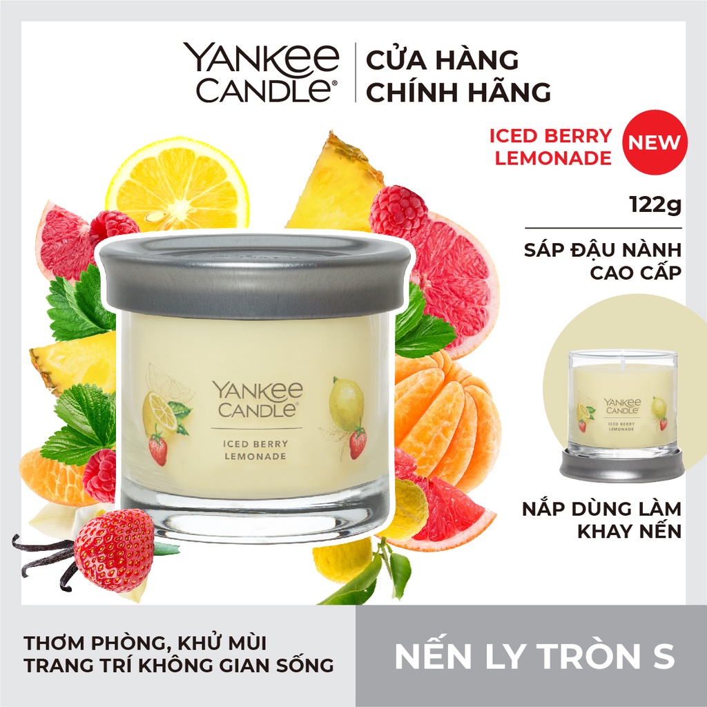 Nhà cửa & Đời sống > Trang trí nhà cửa > Nến & đồ đựng nến || [Mã LIFEMALL991 giảm 10% đơn 99K] Nến ly tròn sáp đậu nành Yankee Candle size S (122g) - Iced Berry LemonadeCòn hàng