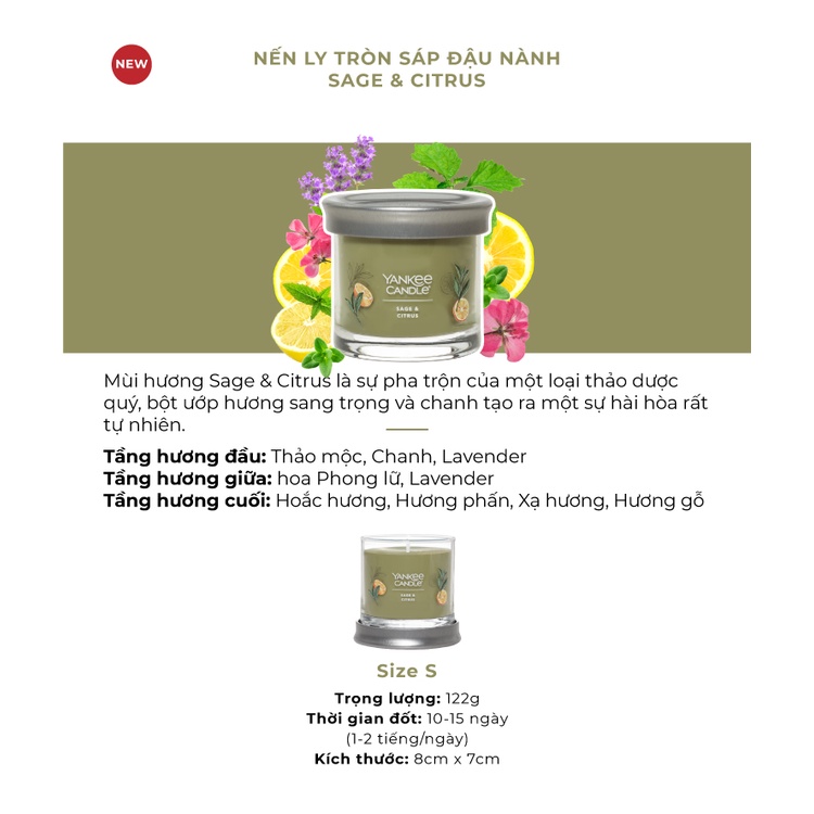 Nhà cửa & Đời sống > Trang trí nhà cửa > Nến & đồ đựng nến || Nến ly tròn sáp đậu nành Yankee Candle size S (122g) - Sage & CitrusCòn hàng