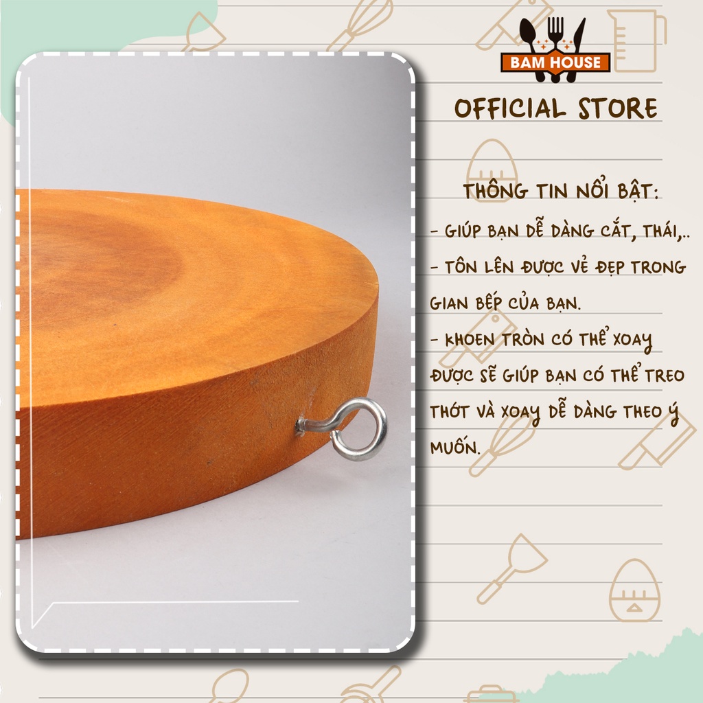 Nhà cửa & Đời sống > Dụng cụ nhà bếp > Thớt || Thớt gỗ nghiến Bam House loại tròn nhiều size cao cấp TG01 – Gia dụng bếpCòn hàng