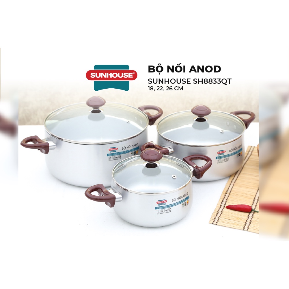 Nhà cửa & Đời sống > Dụng cụ nhà bếp > Nồi || [Mã LIFESH154 giảm 15% đơn199K] Bộ nồi anod Sunhouse SH8833QTCòn hàng