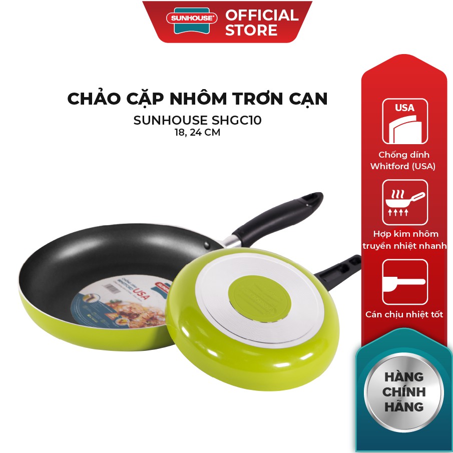 Dòng sản phẩm chảo chống dính SUNHOUSE từ lâu đã được người tiêu dùng ưa chuộng bởi ứng dụng công nghệ chống dính Whitford (USA) – thương hiệu chống dính hàng đầu thế giới giúp việc nấu nướng đơn giản và dễ dàng hơn. Trong đó, cặp chảo nhôm trơn cạn SUNHOUSE CT1824C với màu sắc tươi tắn, kích thước tiện dụng rất phù hợp sử dụng tại gia đình.
