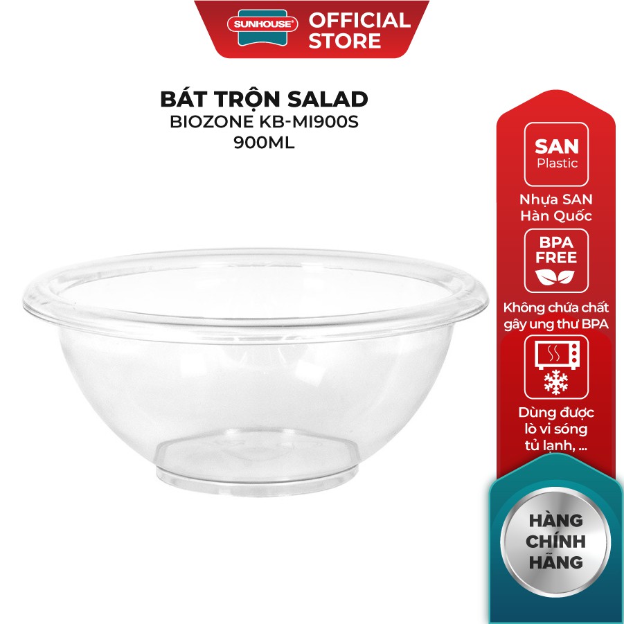 Bát trộn salad BioZone 900ml được làm bằng nhựa SAN nhập khẩu từ Hàn Quốc. Đây là loại nhựa nguyên sinh cao cấp, không chứa chất gây ung thư BPA, có độ bền cao, kháng hóa chất và an toàn với sức khỏe.