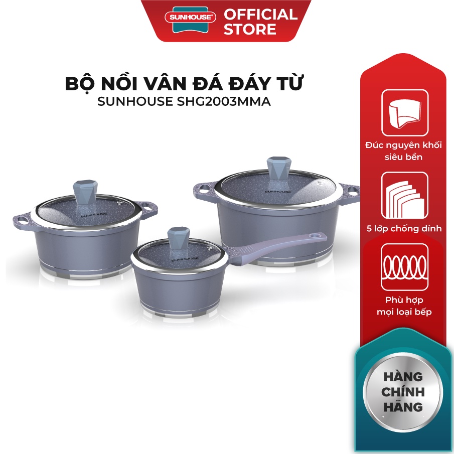 Nhà cửa & Đời sống > Dụng cụ nhà bếp > Nồi || [Mã LIFESUN253 giảm 12% đơn199K] Bộ nồi bếp từ SUNHOUSE 16cm 20cm 24cm SHG2003MMACòn hàng
