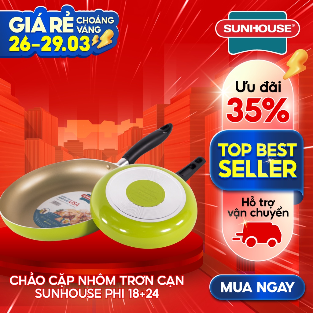 Nhà cửa & Đời sống > Dụng cụ nhà bếp > Chảo || [Mã LIFESUN253 giảm 12% đơn199K] Bộ đôi hoàn hảo - chảo siêu chống dính SUNHOUSE SHS2418 (màu sâm panh)Còn hàng