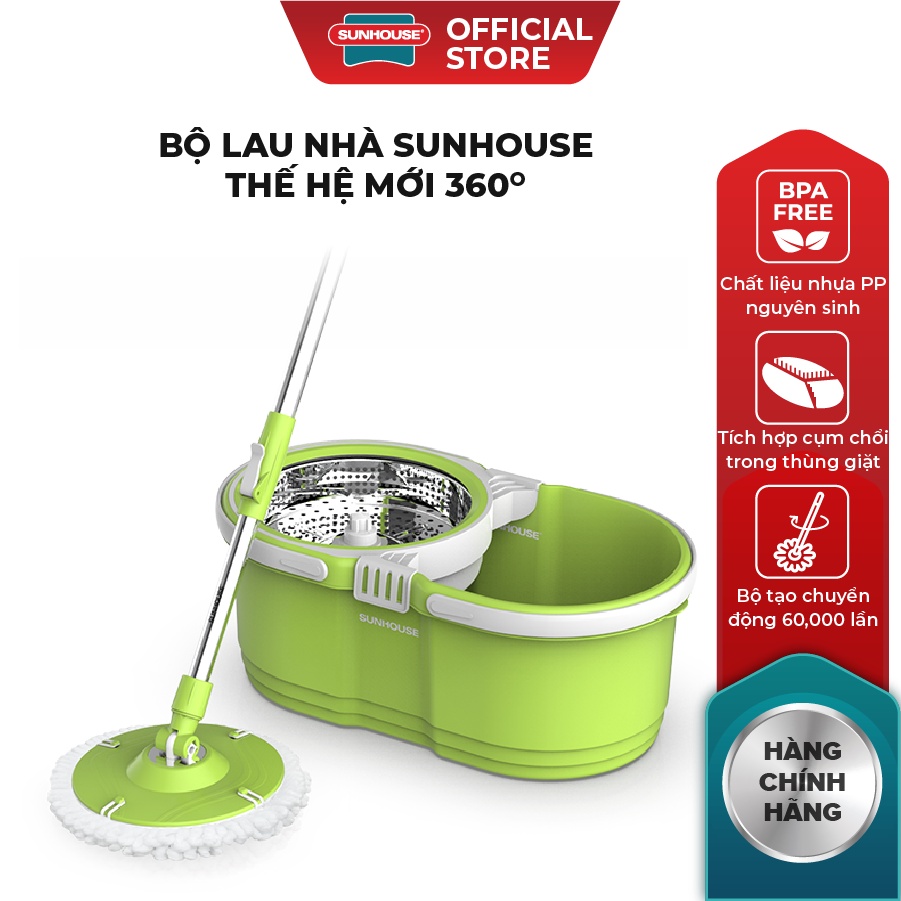 Giới thiệu [Mã LIFEHL25 giảm 10% đơn350K] Bộ Lau Nhà Xoay 360 Độ SUNHOUSE KS-CL260PG Màu Xanh Lá