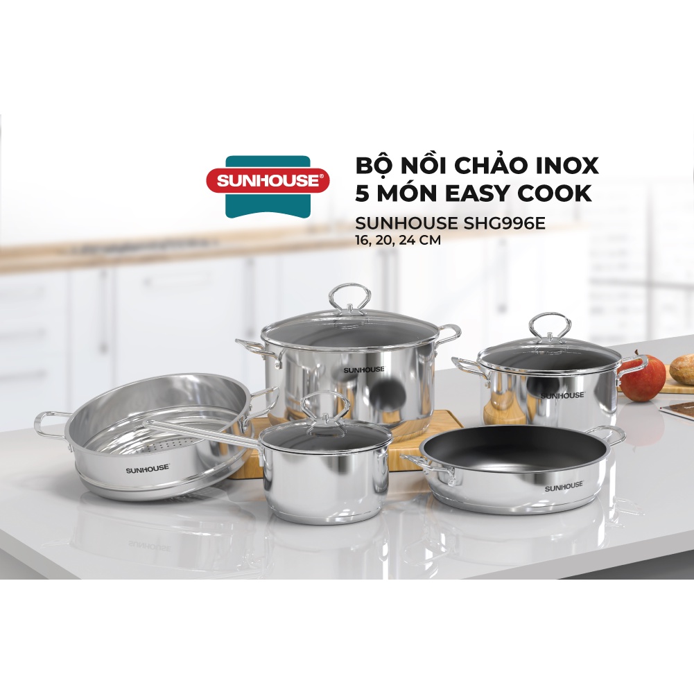 Nhà cửa & Đời sống > Dụng cụ nhà bếp > Nồi || [Mã LIFEHL1505 giảm 12% đơn250K] Bộ nồi chảo inox 5 món Easy Cook SUNHOUSE SHG996ECòn hàng