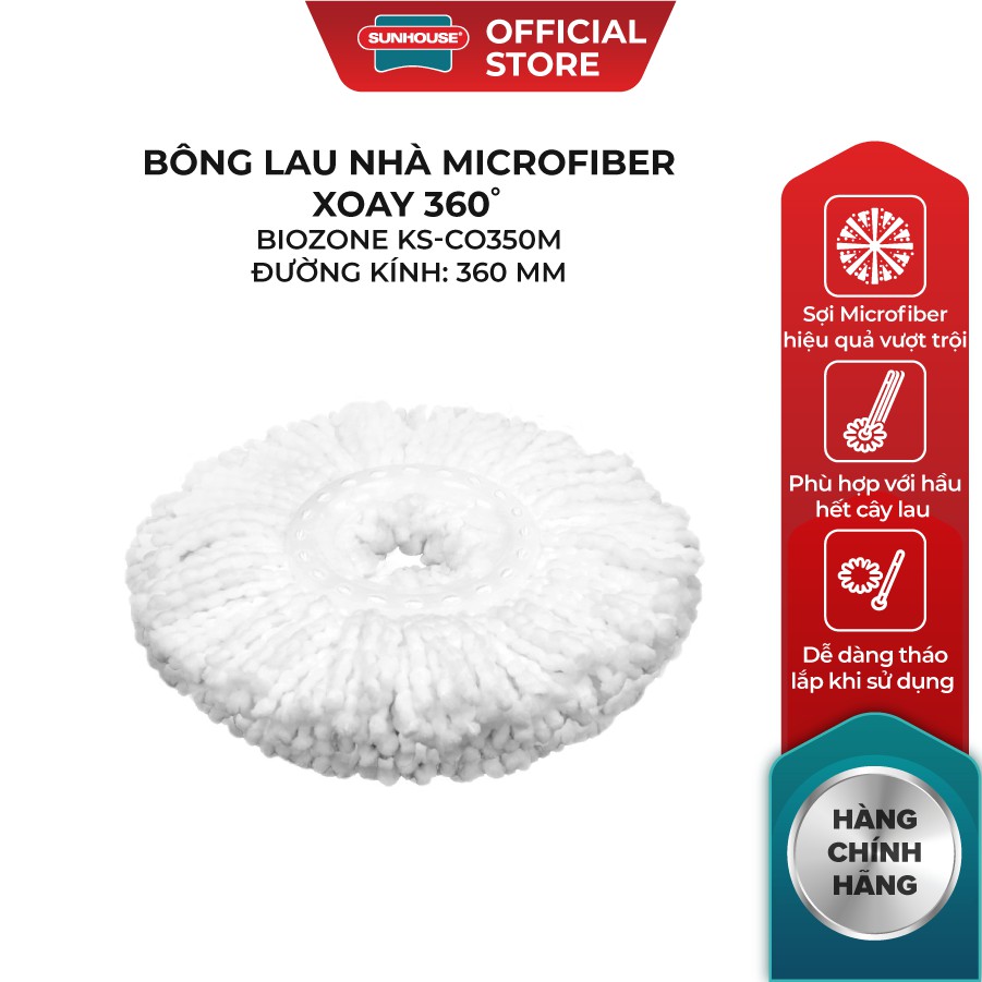 Giới thiệu [Mã LIFEHL25 giảm 10% đơn350K] Bông Lau Nhà Microfiber Xoay 360 Độ SUNHOUSE KS-CO350M Đường Kính 360