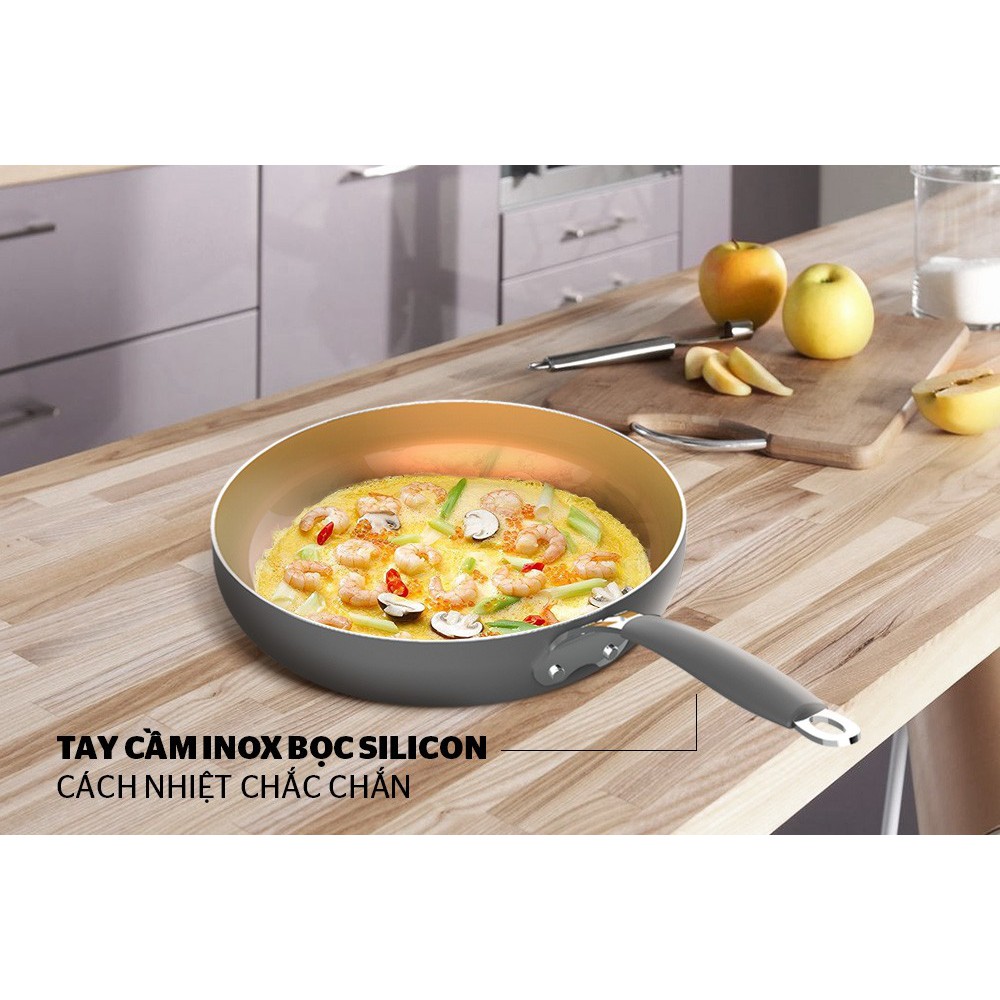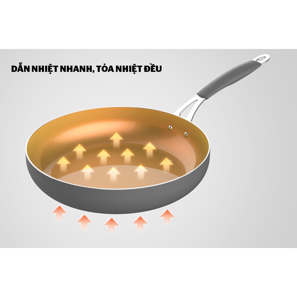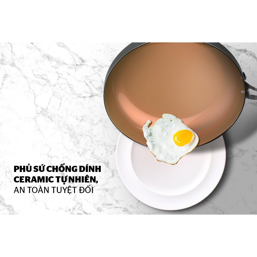 ✨ Lớp chống dính Whitford bền bỉ: Lòng chảo được phủ chống dính Whitford (USA) cho độ bền cao, không bong tróc. Mặt trên cùng được phủ sứ chống dính cao cấp, sang trọng.