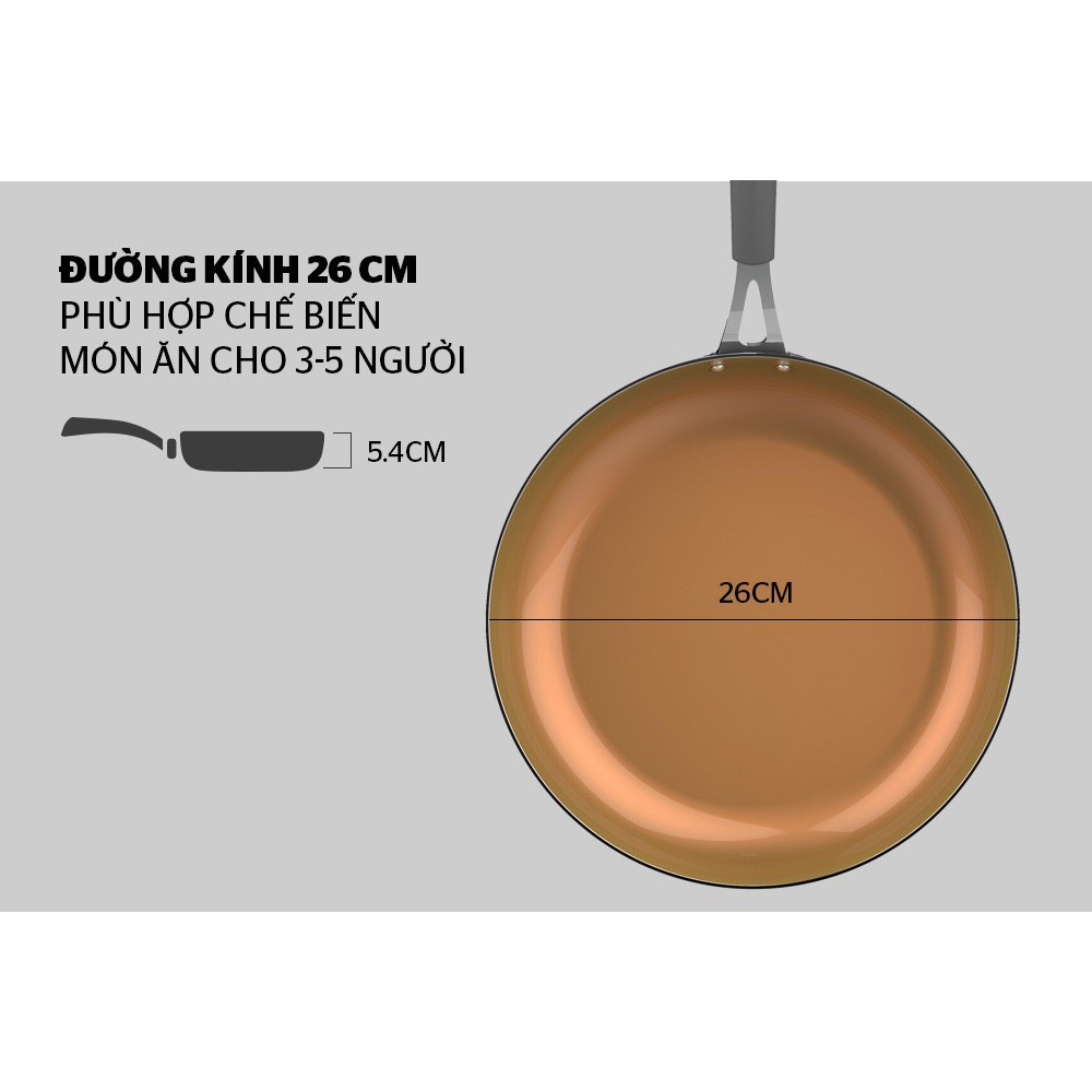 ✨ Nấu ăn nhanh hơn: Với đường kính lòng chảo 26cm, chảo phù hợp với gia đình 2-4 người.